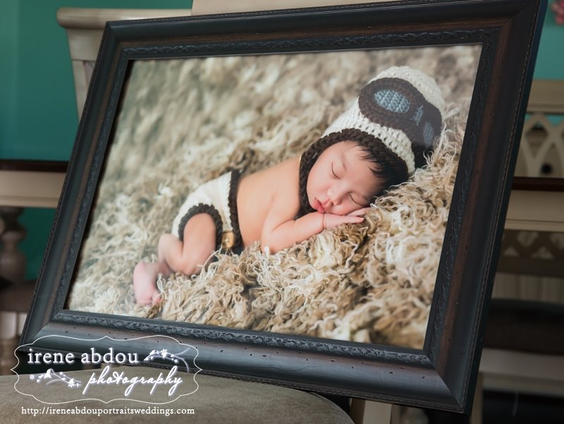 I had photographed this little guy’s dad last year for business portraits, so I was absolutely delighted when I got the e-mail saying that they were expecting their first child this summer. They decided on our 3-session baby photography plan, with a newborn photography session, 6-month session, and 12-month session. At their newborn photography planning/design meeting, we decided to use their college colors (garnet & gold) with dad’s construction hard hat and sports props. Another theme was an animal menagerie, and mom, dad, and baby arrived at our Germantown-Clarksburg photography studio with an entire large plastic bucket full of stuffed animals. How adorable! We did their family portraits on our fabulous sheepskin rug. Every photograph I create on that rug turns out amazing! And, of course you’ve noticed this little 8-day old newborn’s silver hair. I kept oohing and aahing throughout their newborn photography session… sooo beautiful!